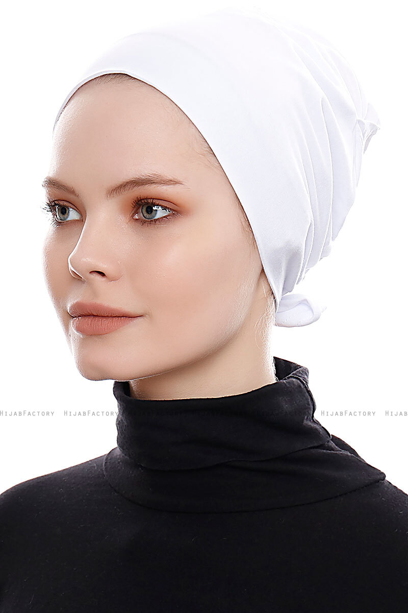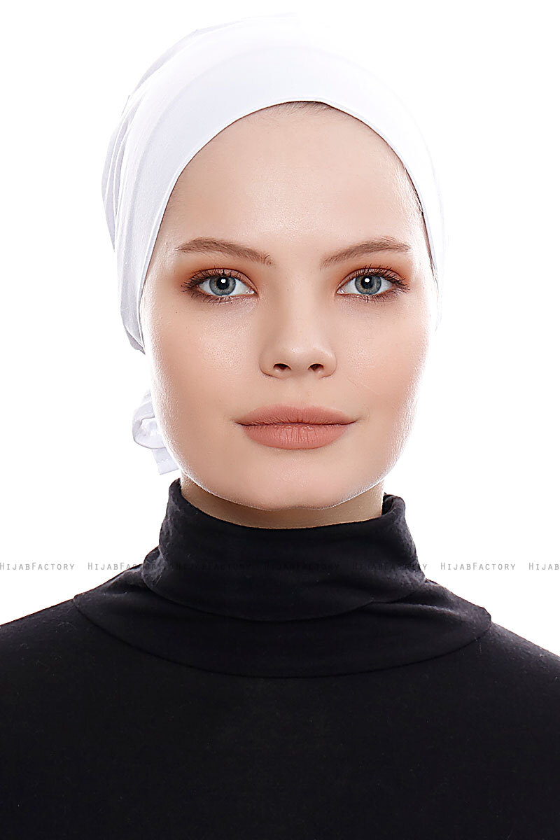 Kiraz - Weiß Baumwolle Untertuch Aus Ecardin.Dieser Unterschal ist größer. Es ist für größere Köpfe gemacht.