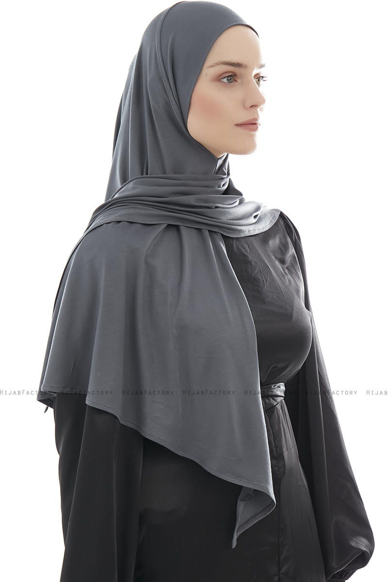 Ajda - Dunkelgrau One-Piece Hijab Aus Ecardin.