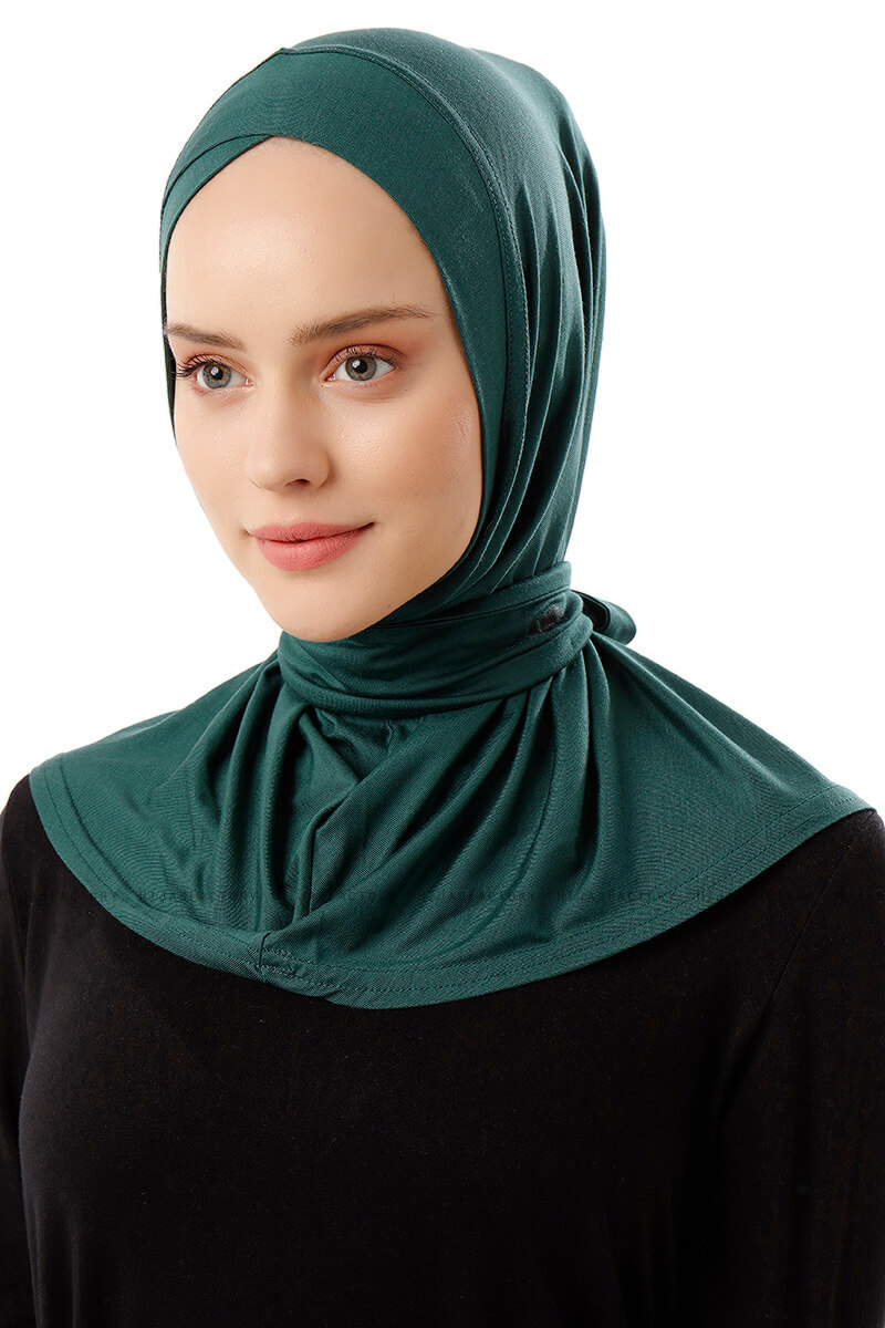 Sportif Cross - Dunkelgrün Praktisch Fertig Viskos Hijab Aus Ecardin In der Türkei.