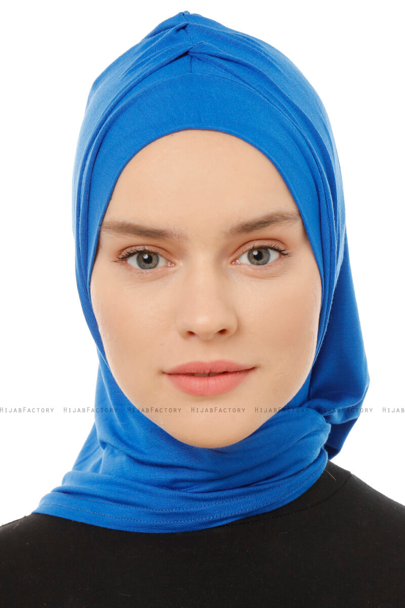 Isra Plain - Blau Praktisch Fertig Viskos Hijab Aus Ecardin In der Türkei.