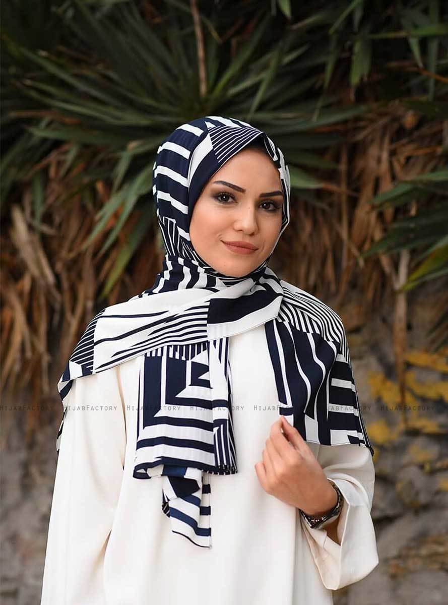 Marwa - Navy Blau Gemustert Crepe Hijab Aus Mirach in Türkei.