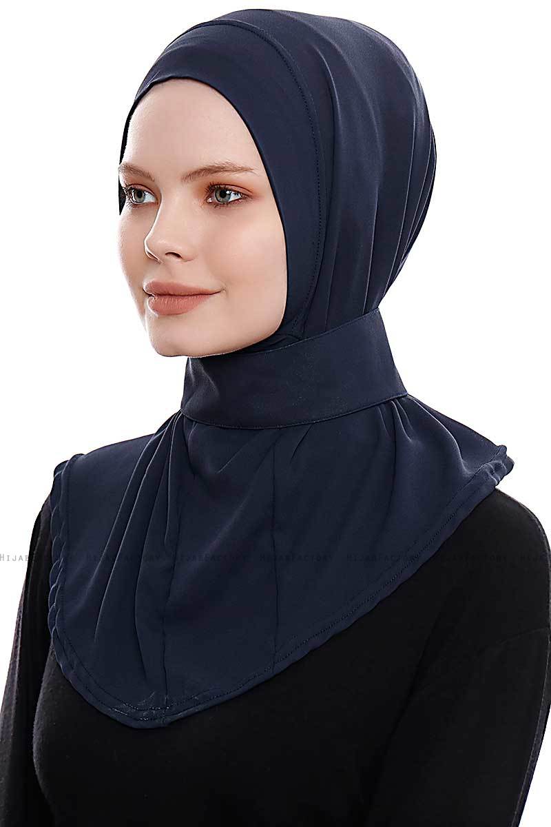 Narin - Navy Blau Praktisch Fertig Crepe Hijab Aus Ecardin in Türkei.